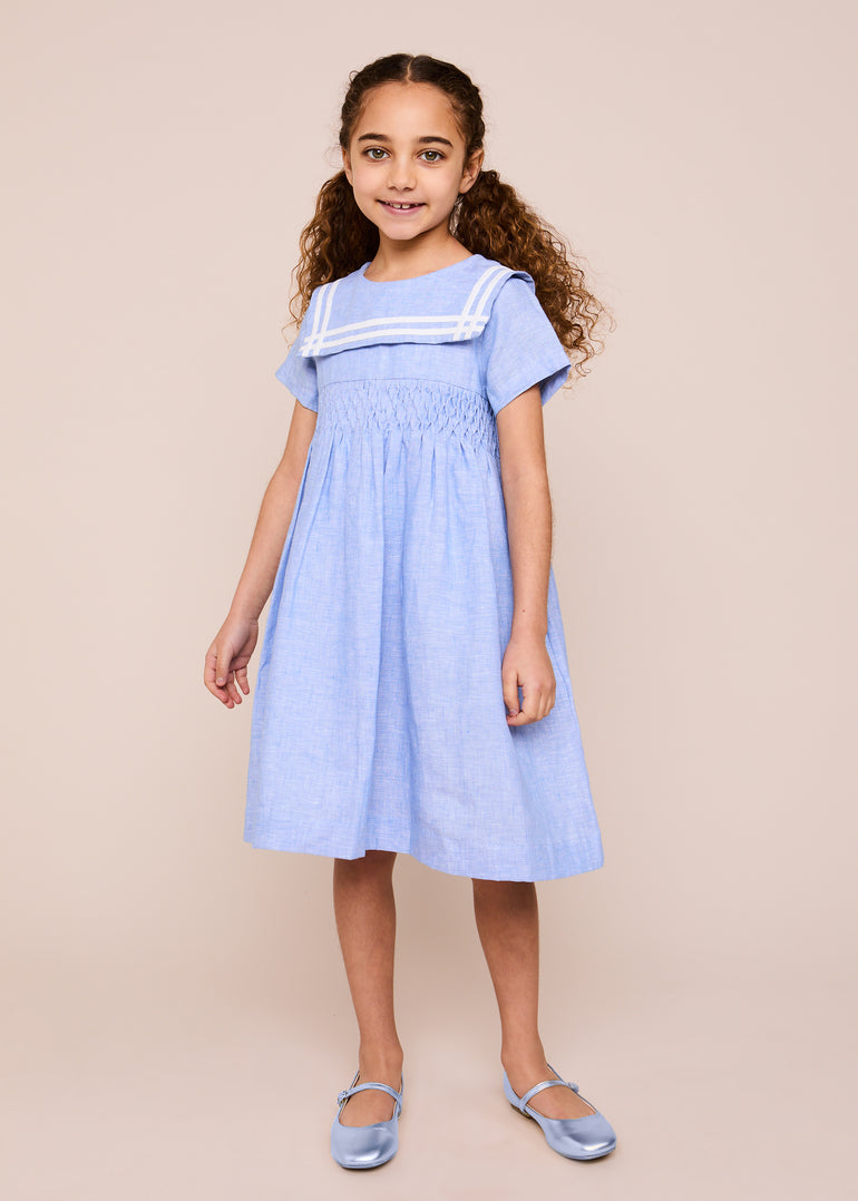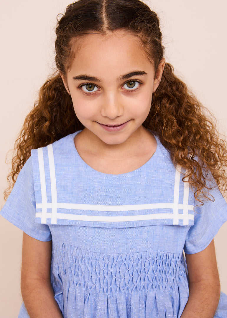 At the heart of the Dress lies its exquisite honeycomb hand smocking, a true testament to artisanal craftsmanship. This intricate detail adds texture and dimension to the dress, creating a mesmerising focal point that sets it apart from the rest.